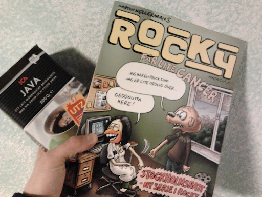 Naturligtvis hade man glömt något. I detta fall skulle något visade sig mer eller mindre livsnödvändigt. Kaffe. Jag tog stålhästen och begav mig. Inne på Ålidhem centrum var det fullt med människor. Klockan var bara sex, men imme på Baloo klättrade dom (en tjej) över en slags träpanel för att saxa förbi kön och komma tala spåret in i bordsmiljön. Även utanför Baloos var det fullt med folk. Många var utklädda, några placerade ut kvitton ut längst ett rutformat nät. Jag tänkte tillbaka på när jag kom in genom skjutdörrarna. Plötsligt gjorde de två eskimåerna sin stod där utanför (givetvis bredvid en parkerad släde) sig betydligt bättre i kontexten. Jag såg helhetsbilden. Studenter. Nollning. Awesome. Gick in och köpte ett paket java och senate Rocky. Cyklade hem.