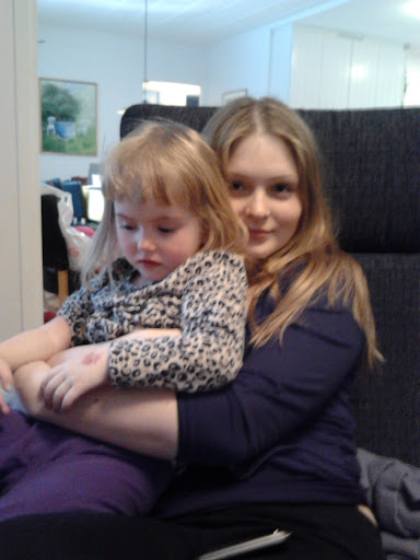 Ingrid i fåtöljen hos mormor och morfar på Berghem.