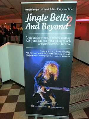 Framåt kvällen blev det en gnutta stressigt. Klaras kompis skulle skjutsas hem innan jag skulle iväg på ett evenemang med gänget inifrån butiken på stan. Det blev i vanlig ordning så att plötsligt var det väldigt ont om tid och allting blev väldigt hastigt och lustigt. Typiskt. Tidsoptimism är definitivt ingen smidig egenskap. Nå. Jag landade på Äpplet en kvart för sent, men det var ändå lugnt. En person ur det blivande sällskapet skulle rentav trilla in efter mig, vilket på något sätt kändes skönt. Kvällen blev en succé. Det var Herrgårdsnöjen som presenterade showen. Det är ju inte första året, senast var det i Baggböle herrgård, då för närmare två år sedan. Nå. Vi åt gott och drack gott och showen var fantastisk. En explosion av sång, dans, och teatraliska levande uttryck. Jag blev stundtals alldeles till mig av att bara se hur killarna och tjejerna uppförde sig uppe på scen.