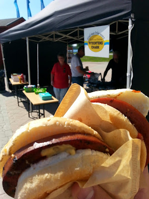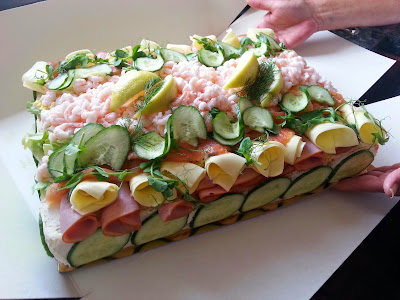 Efter ceremonin med traktorerna åkte vi iväg för ett efterhandsfirande i Storfors. Det blev smörgåstårta, bland annat. Efter en liten incident som gjorde att jag fastnade på toaletten längre än vad jag hade tänkt mig anslöt jag åter till sällskapet och detta just i tid för att hjälpa Tove att sätta upp sådant prasselband i taket på baksidan var de skulle sitta och ha traditionellt party på kvällen.