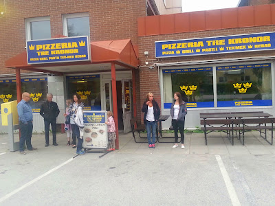 Resan och detta sociala event toppades med en pizza ute. Det kom att bli så att vi hamnade på Tre kronor, ett ställe som öppnar var en billig mataffär "Matkronan" låg när jag var ung. På senare år har Ica Supermarket tagit över. Nåväl.